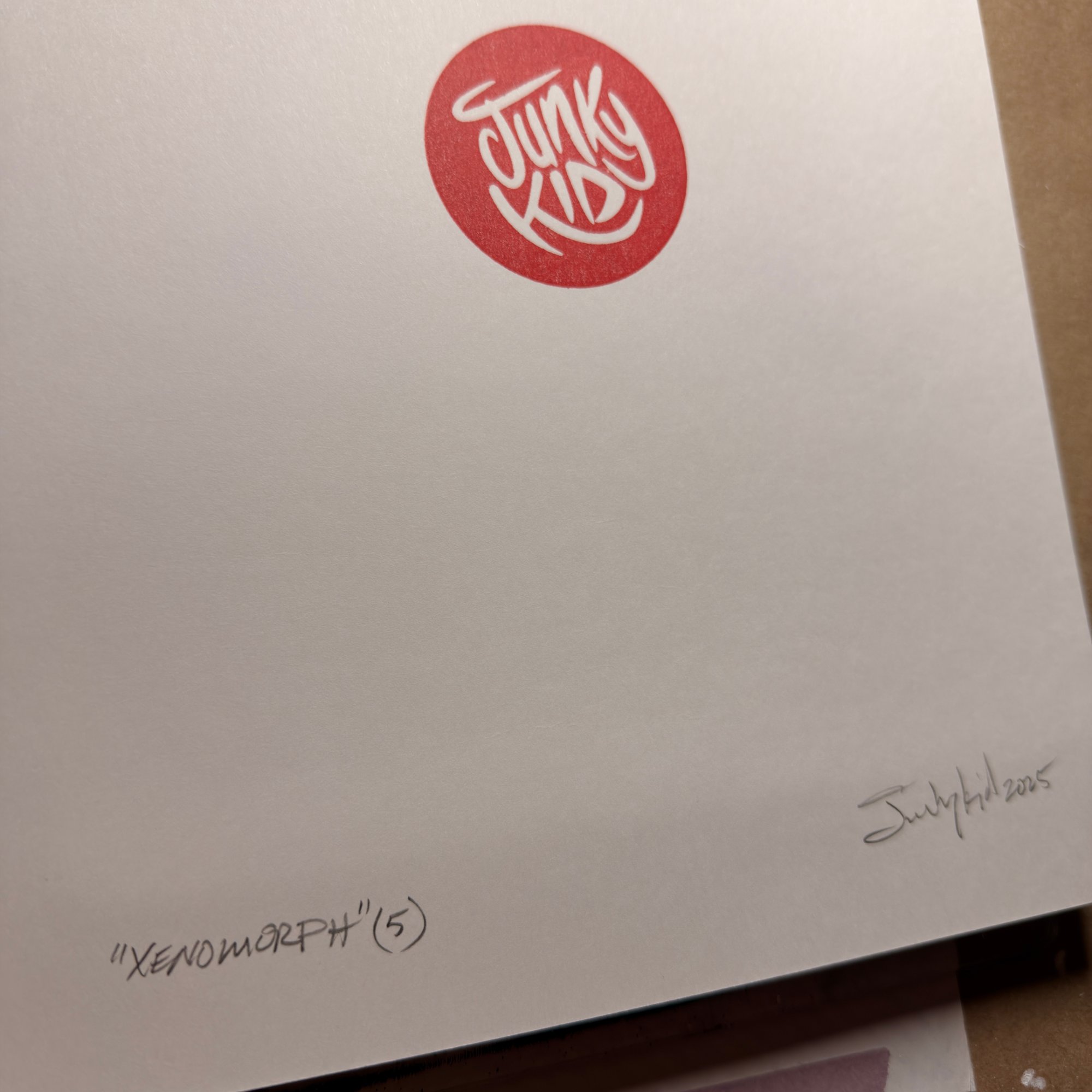 Signed in pencil and logo stamped on back